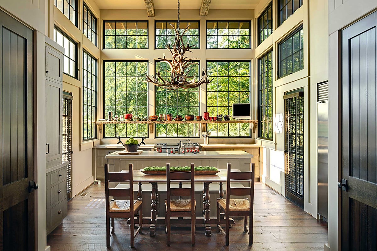 Mountain homes typically feature large picture windows that allow homeowners and guests to take full advantage of stunning mountain vistas. Large windows frame the views and provide natural light throughout the home.