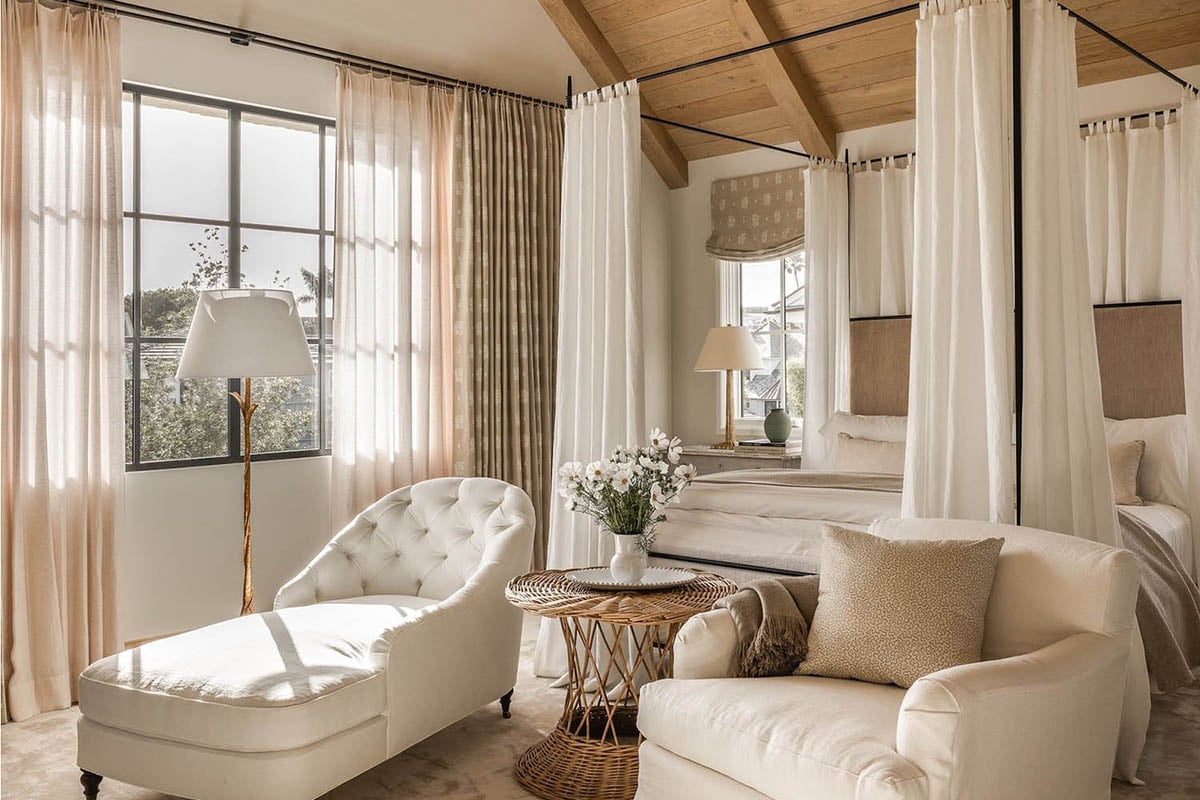 Window treatments instantly elevate a space, adding refined detail, elegance, and a finished look. Choose sheer curtains to allow natural light to flood the space or create a strong visual impact with pattern, texture, and color. In the two rooms below, design firm West of Main incorporated light linen curtains that contrast beautifully with the surrounding warm tones.