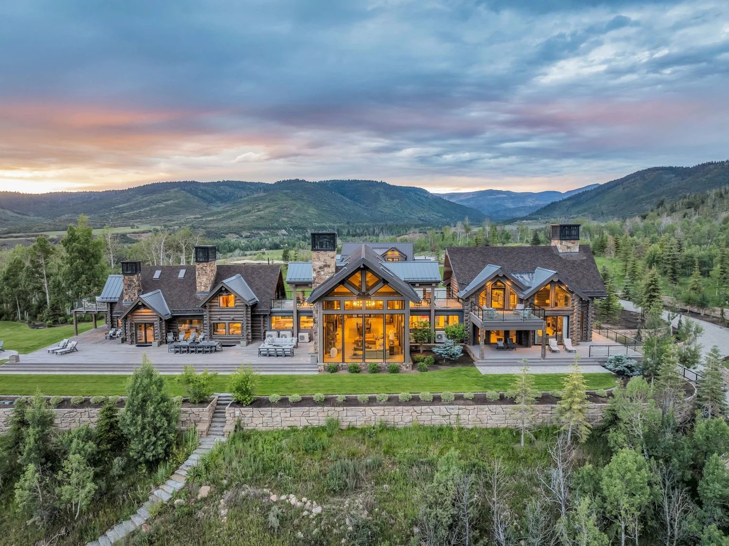 Defined by a dramatic pitched roof and extensive glazing, the new center of the dwelling captures stunning mountain vistas. The extensive four-year renovation resulted in a luxurious property featuring 6 bedrooms, 6.5 bathrooms, an indoor pool, and the unique addition of a secret underground tunnel.